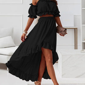 Careful details: with an asymmetrical hem and elastic cut at the shoulders, the set ensures an elegant look and optimal fit for every occasion.
