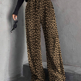 The flared pants with leopard print combine bold style with modern comfort. Ideal for confident looks, they suit both casual and elegant outfits.
