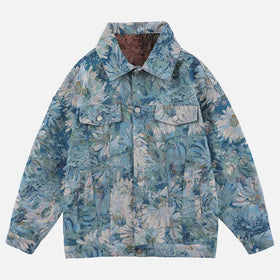 The floral denim jacket combines classic denim with an elegant floral print, ideal for fashion-conscious women. This versatile jacket is perfect for any occasion, whether for a casual day or an elegant evening.
