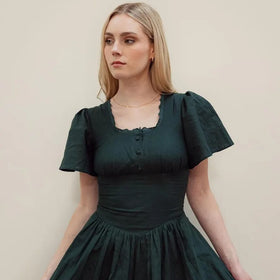 Hymn Linen Dress in Forest Green