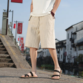 These linen Bermuda shorts combine retro charm with modern comfort. Made from breathable linen, they feature a button closure with an inner drawstring for a secure and adjustable fit.