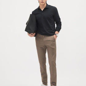 - Design: Classic polo collar with button placket, combined with long sleeves for an elegant silhouette.