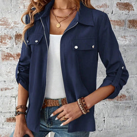 The Robyn zipper jacket is the perfect combination of style and functionality. With its modern cut and elegant zipper, this lightweight jacket offers not only a fashionable look but also practical details like chest pockets and roll-up sleeves that provide versatility. The breathable material guarantees all-day comfort and makes it the ideal choice for leisure, work, or travel. Easily pair it with your favorite jeans or stylish trousers for an elegant appearance.