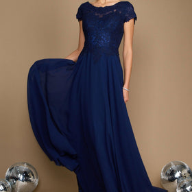With our sophisticated floor-length dress, get ready to draw attention at weddings, evening parties, or those posh black tie events! This exquisite item, created by us, is crafted with the highest care utilizing premium materials that feel wonderful against your skin. The dress has a chic crew neckline that adds an air of refinement, and the flowing chiffon skirt gives your appearance a graceful, ethereal quality. This dress achieves the ideal harmony between grace and allure with just the appropriate amount of sheerness and beautiful lace details. When you put on this outfit, you can expect to shine like never before and make a statement wherever you go!
