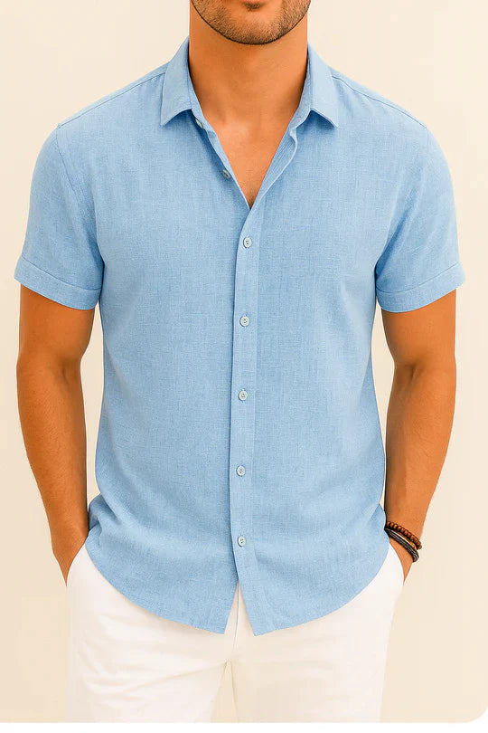 Minimalist, airy, and elegant. Made from a breathable cotton and linen blend, this short-sleeve shirt from Vero Amsterdam exudes understated elegance. Perfect for summer days when you want to combine comfort and a polished look, whether at the beach or the office.