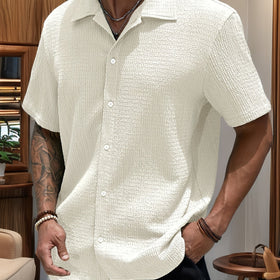 This casual men's short-sleeve shirt is the perfect choice for relaxed occasions. Made from lightweight, breathable polyester, it offers both comfort and versatility.