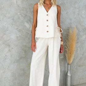 This sleeveless jumpsuit perfectly combines elegance and comfort. With a stylish V-neck and a minimalist line, it is ideal for everyday wear as well as special occasions.