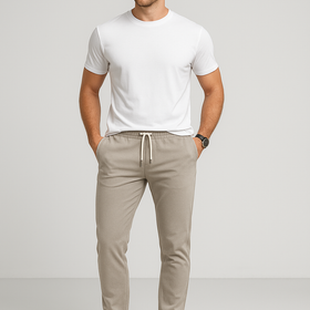 Slim Fit Refined Trousers with Drawstring for Men – Casual Stretch Trousers