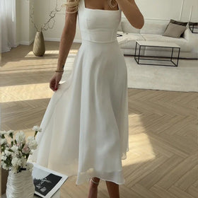 - Square neckline for a modern and sophisticated touch.