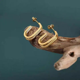 Two-layer stainless steel earrings in J-shape – Stylish jewelry piece for women