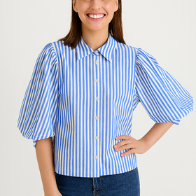 The striped blouse with puff sleeves combines classic chic with modern flair. The striking striped pattern and voluminous sleeves make it the ideal choice for stylish occasions.