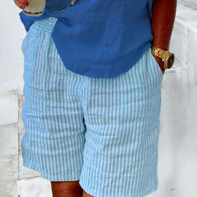 With the Léonie shorts, you add a bit of chic to your summer wardrobe. The modern striped design ensures a trendy look, while the breathable linen and cotton blend keeps you pleasantly cool even in hot weather. Practical details such as pockets and the mid waist make this garment a very practical model. Léonie is the ideal companion for everyday life, vacations, or beach walks.