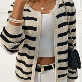 Discover the striped knit cardigan for women that combines casual sophistication and comfort. Made from soft material, this cardigan offers a timeless design ideal for any season.