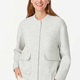 The structured jacket with pockets combines modern design with subtle elegance. Its finely textured surface and straight cut give the jacket an urban character, perfect for versatile looks.