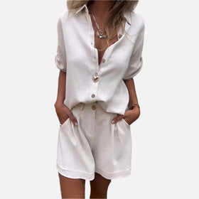 Experience effortless elegance with our stylish two-piece set made of lightweight linen. This outfit is ideal for women who appreciate both comfort and fashionable style.