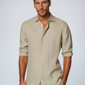 Elevate your summer wardrobe with this Khaki linen shirt, designed for effortless sophistication. Woven from pure, breathable linen, this shirt keeps you cool while maintaining a refined silhouette. The pale blue hue channels a classic coastal charm, perfect for everything from Mediterranean getaways to weekend brunches.