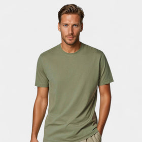 Whether worn under a jacket or on its own, this olive green Supima T-shirt is your go-to for premium comfort and everyday sophistication.