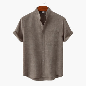 The Moritz Shirt - Brown Short Sleeve Shirt – Men’s Mandarin Collar