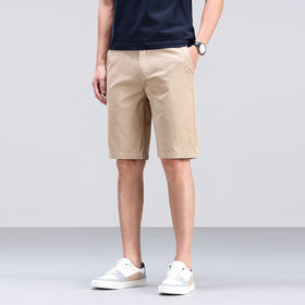 Crafted for everyday ease and timeless style, these khaki chino shorts are a warm-weather essential. Made from a soft yet structured cotton blend, they feature a regular fit with mid-thigh length, slanted front pockets, and a clean flat front. Whether styled with a polo or a casual tee, these shorts deliver a smart yet relaxed look that works all summer long.