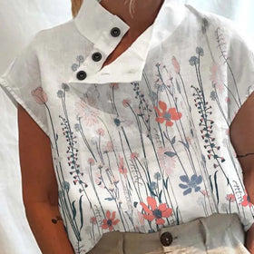 Short sleeves and playful buttons: The short sleeves and buttons add charming and practical details to this elegant top.