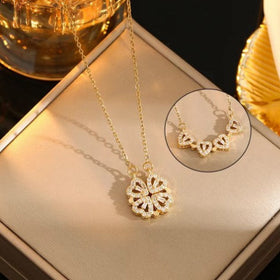 Whether you see a four-leaf clover or four tiny hearts, this elegant pendant tells your story. Sparkling with delicate stones, it catches the light — and your heart — every day. A symbol of being loved, grounded, and strong.