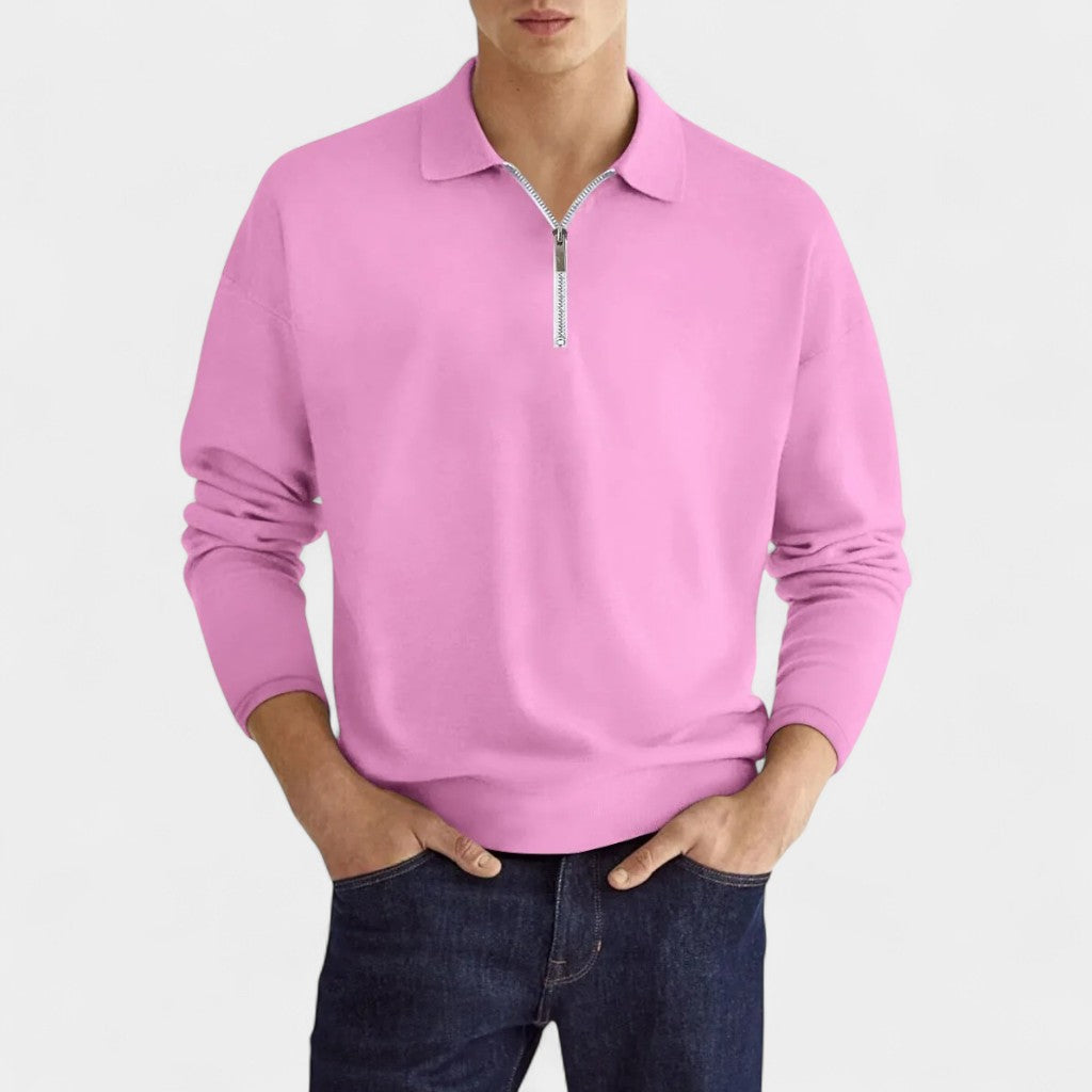 TrendAura | Men’s Long Sleeve Zipper Polo Shirt
