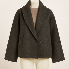 Wrap yourself in timeless sophistication with this cocoon-style coat, crafted for effortless layering and everyday refinement. Made from a soft wool blend, it features a relaxed yet structured silhouette with an oversized shawl collar and subtle double-breasted button fastening for a clean, modern finish.