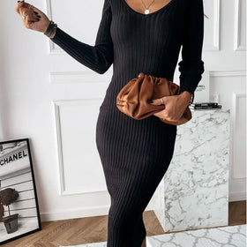 Update your fall and winter wardrobe with the Onni Ribbed Bodycon Dress and radiate confidence wherever you go.