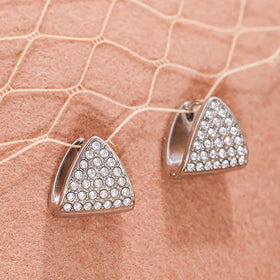 Triangular stainless steel earrings with sparkling zircon