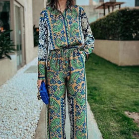 Tula | Vintage Boho Set for Women with Shirt and Wide Pants