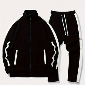 This two-piece men's tracksuit combines street style and comfort in perfect harmony. With its minimalist design in black and striking white contrast stripes, it is ideal for the gym, relaxed days, or on the go.