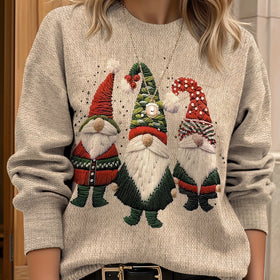 Add a joyful style to your winter wardrobe with this ugly Christmas sweater for women, featuring detailed gnome embroidery and a comfortable long-sleeve fit. The soft knit and fun festive pattern make it perfect for Christmas gatherings, family photos, or simply adding a touch of warmth and humor to cold days.