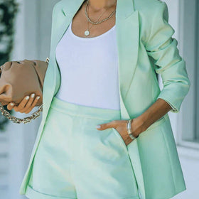Unleash your inner fashionista with our stylish Venice set. This elegant ensemble combines a refined blazer with casual shorts, giving you the option to wear both pieces together or separately. Ideal for chic events or relaxed days in the city, it allows you to create your individual look and always feel stylish and confident.