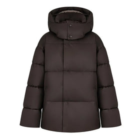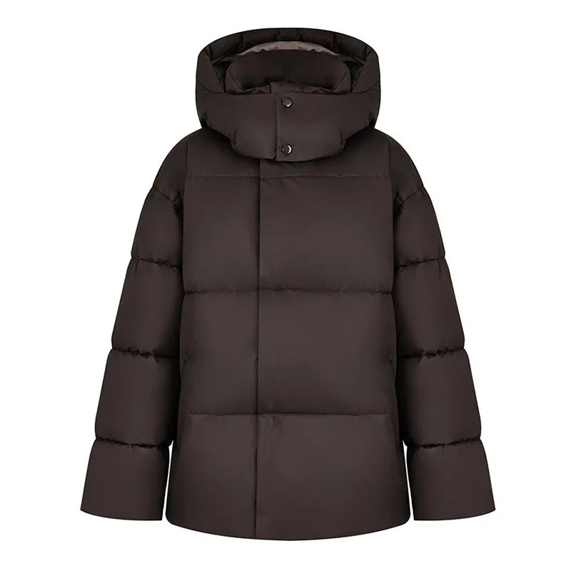 - Hood and stand-up collar: Protects the neck and head from cold.