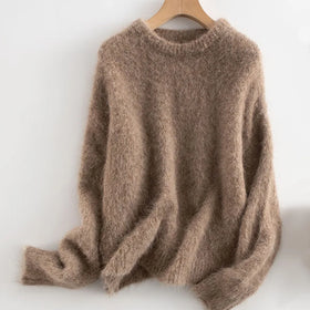 This warm alpaca sweater for women offers a casual and comfortable style, ideal for the cooler months. With its dropped sleeves and loose cut, it is perfect for a relaxed look.