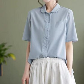 Made from soft medium-weight linen, this shirt features a structured collar and medium-length sleeves. The front button closure and subtle side splits provide a clean finish. Its design makes it a versatile piece, suitable for pairing with fitted pants or layering under dresses.