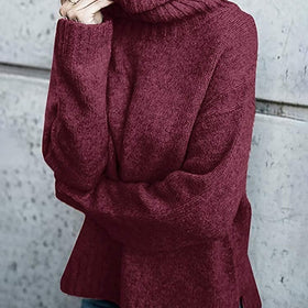 This winter sweater with a turtleneck is made from cozy, soft knit fabric, ensuring comfort and subtle style. The loose fit and wide ribbed collar wrap around the neck, while the fitted cuffs add elegance to the overall look. Perfect for chilly days, layered outfits, and winter moments of relaxation.