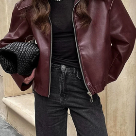 Add impact to your wardrobe with this women’s oversized bomber jacket in deep burgundy. The short waist cut and relaxed fit create a modern silhouette that works effortlessly across different outfits. Ideal for daily wear, social plans, or adding a bold edge to layered looks.