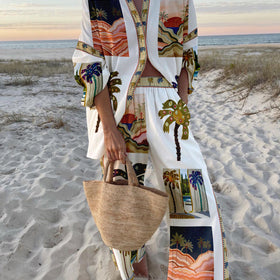 Tropical Prints: Features vivid palm trees and sunset scenes for a laid-back, getaway vibe.