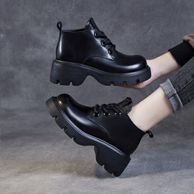 These women’s chunky ankle boots make a statement with their standout platform sole and classic lace-up design. The silhouette adds a modern edge to any outfit, whether styled with skinny jeans or as a striking contrast to a flowing dress. Ideal for everyday wear, special occasions, or when you want your footwear to take centre stage.