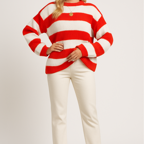 Stay warm and stylish with this oversized striped knit sweater pullover, crafted for comfort and effortless everyday wear. Its relaxed shape and bold stripes make it an easy favorite for layering across the seasons. Designed to bring comfort and versatility into your wardrobe.