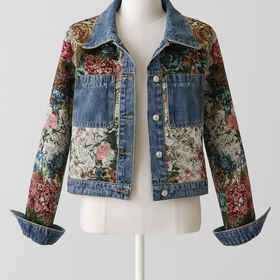 Playful Patchwork Design: Eye-catching floral accents transform a casual jacket into a fashion-forward statement.
