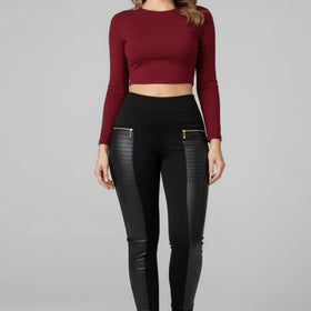 Elevate your style with these high-waist faux leather leggings featuring zip accents that bring a bold touch to your look. The flexible faux leather hugs your silhouette while allowing movement and comfort. Perfect for nightwear or edgy-daywear, they merge attitude and wearable function.