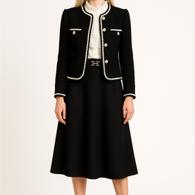 This jacket combines retro inspiration with modern versatility, giving you a piece that transitions effortlessly from day to night. Its pearl accents and cropped fit ensure timeless elegance with every wear.