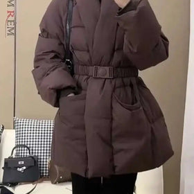 The women’s V-neck puffer jacket winter fashion is a modern design with a clean, tailored cut. Its distinctive V-neckline gives it a unique and appearance, while the versatile shape makes it suitable for both casual wear and more dressed-up occasions. A stylish puffer jacket that blends seamlessly into layered winter outfits.