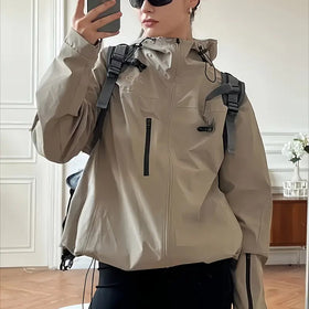 The women’s stylish hooded windbreaker is a jacket that combines a straightforward cut with functional details. With its loose fit and regular length, it works well in everyday city outfits as well as in more relaxed weekend looks. A plain colour finish and practical design make it a piece that fits naturally into wardrobes across multiple seasons.