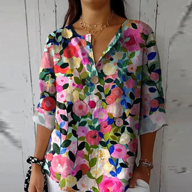 This blouse features a lively all-over pattern with a soft V-neck and a loose, casual cut. The mid-length sleeves and single button detail create a light structure that doesn't restrict movement. Designed for everyday use, this piece adds personality to everyday styles.