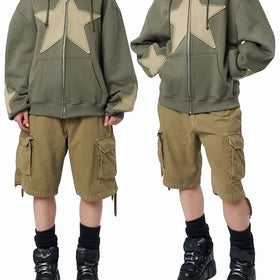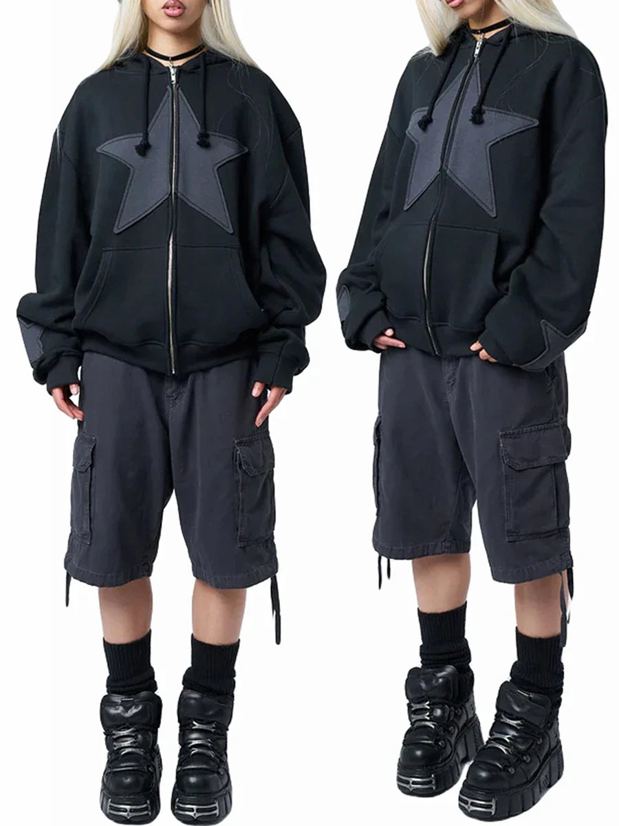 This casual hoodie perfectly combines style and comfort. With its unique star print and practical zipper, it is ideal for autumn and spring and can be combined in many ways.