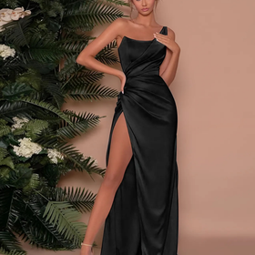 tep into a look of sophisticated allure with this one-shoulder evening gown, designed to turn heads at galas, receptions, or red-carpet-style events. With its sleek silhouette and dramatic leg slit, it strikes the perfect balance between elegance and modern appeal.