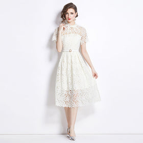 Women's Elegant Lace Dress Midi Festive Fit & Flare Cocktail Wedding